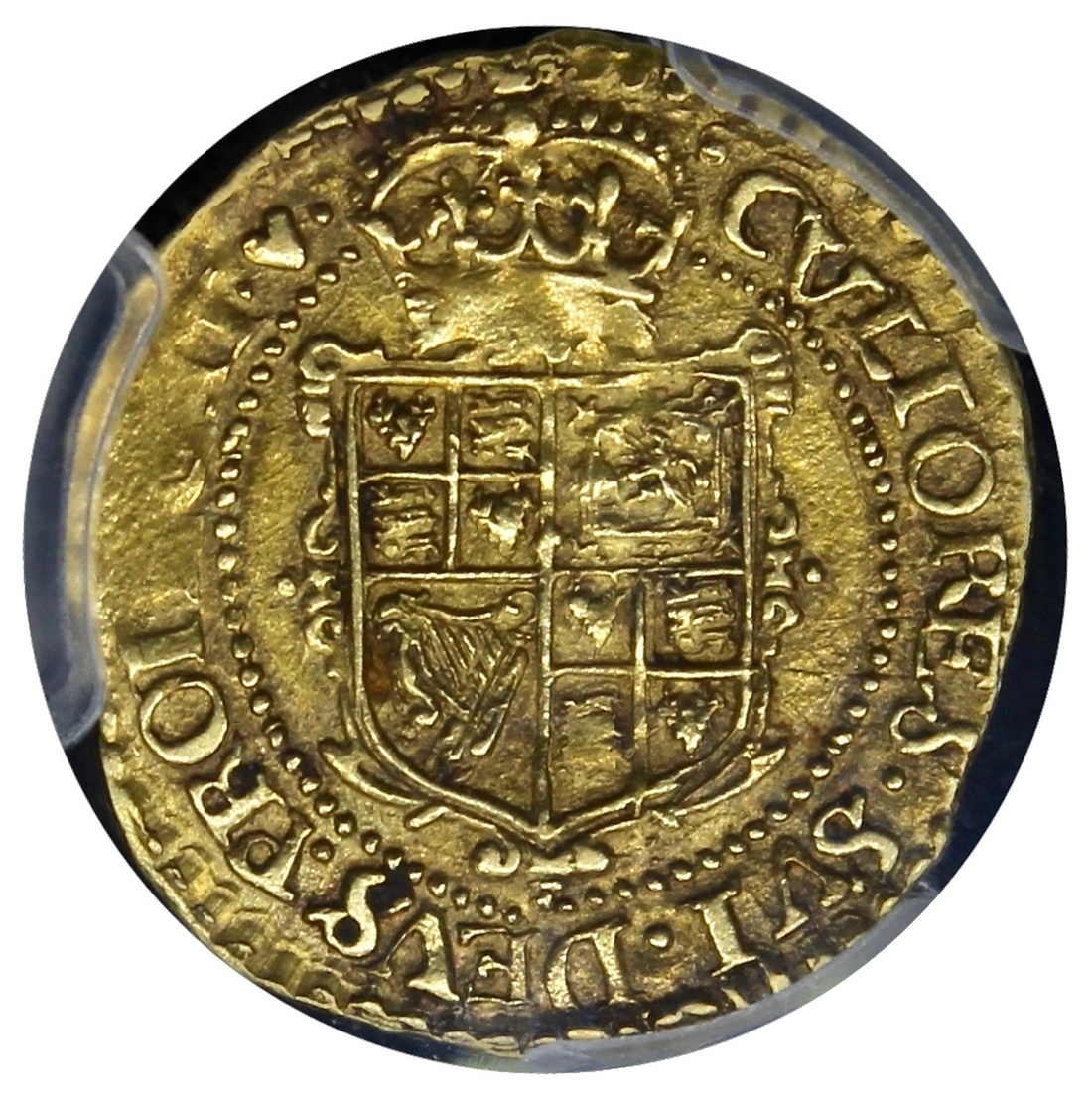 Charles I, gold Crown, 1629-30, Group B, Tower (under King), 6h, m.m. heart (Schneider II, 233-35; N.2182; S.2712), light tone, about very fine/very fine, scarce, in PCGS holder, graded AU55 (Cert. #83867165)