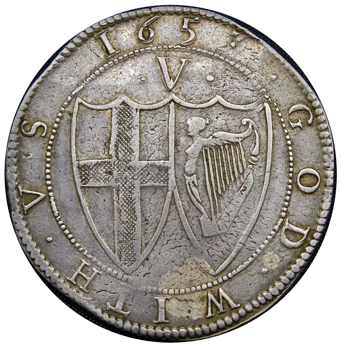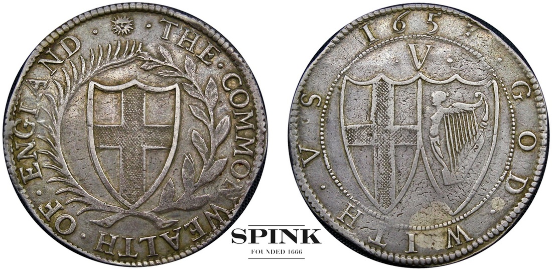 Commonwealth, Crown, 1653, Tower, 29.94g, 2h, m.m. sun, Ns over inverted Ns in obverse legend (ESC 6 [6]; N.2721; S.3214), some edge smoothing and spots of staining, otherwise older cabinet tone, very fine/good fine
