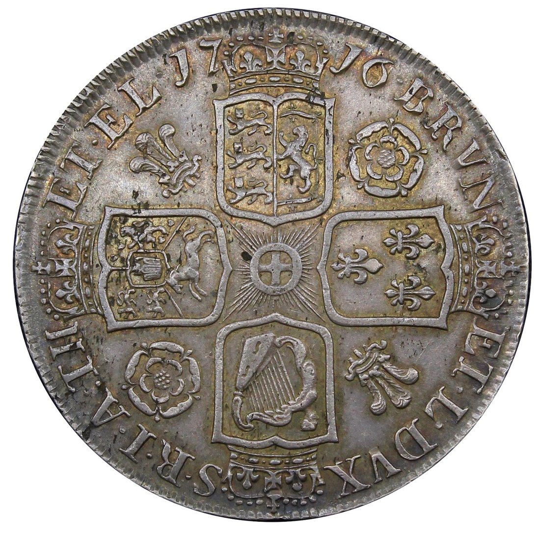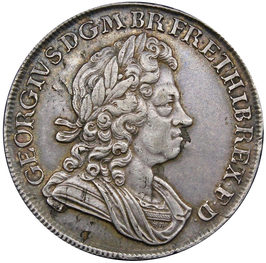 George I, Crown, 1716 SECVNDO, rev. eleven strings to harp, large roses and plumes in angles (ESC 1540 [110]; S.3639), a few small metal lamination flaws, otherwise with an attractive original cabinet tone, a handsome coin, a pleasingly bold very fine