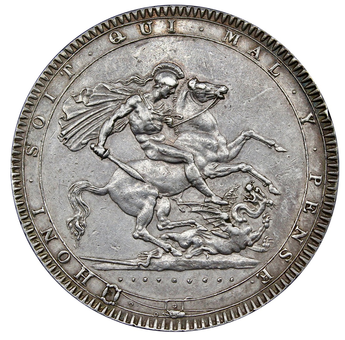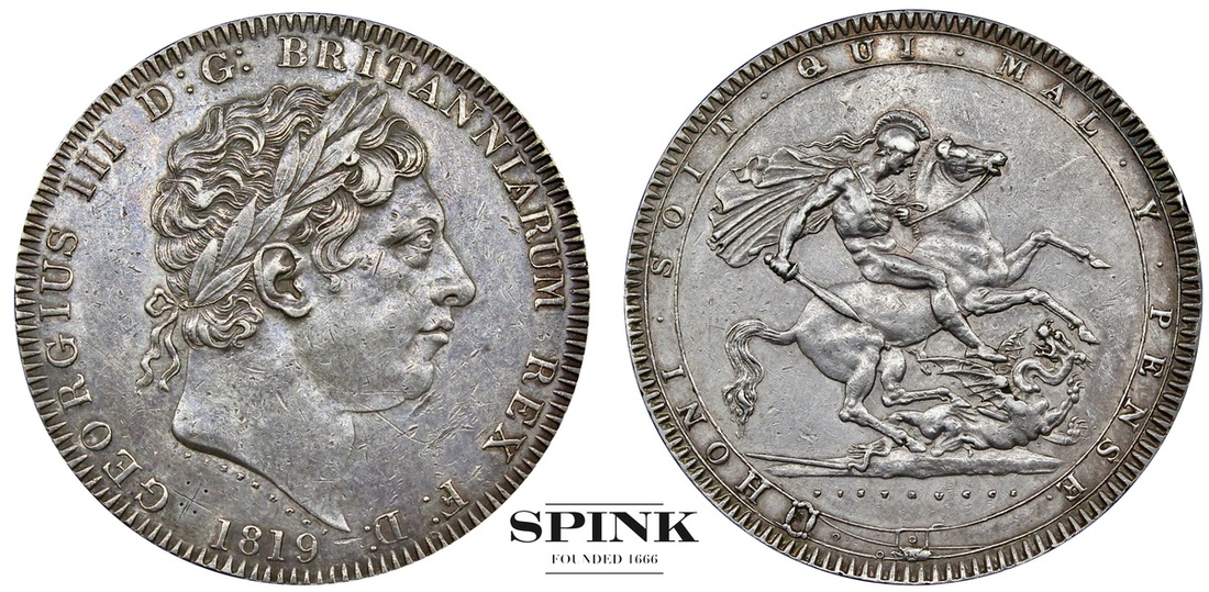George III, Crown, 1819 LIX*, stops on edge (ESC 2010 [215]; S.3787), old graffito beneath portrait, otherwise toned, a really bold very fine
