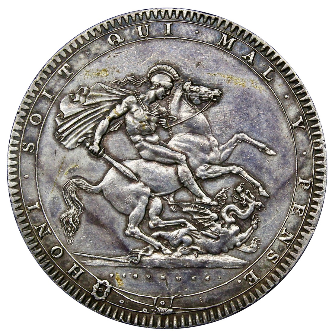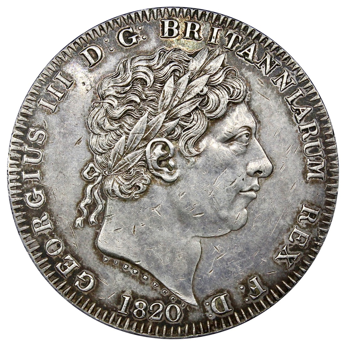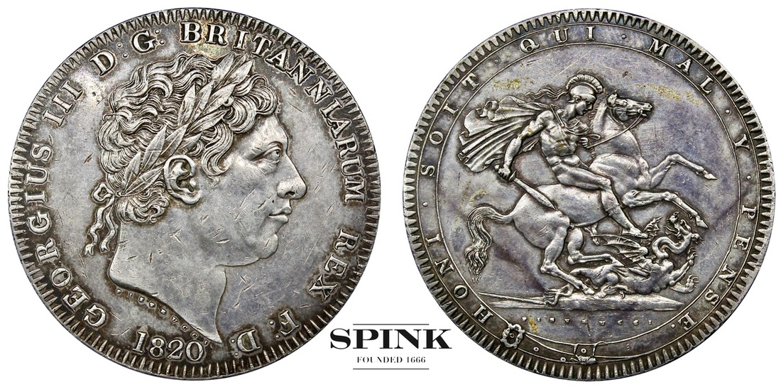 George III, Crown, 1820 LX* (ESC 2016 [219]; S.3787), light hairlines and surface marks in fields, the reverse with spots of lacquer, otherwise a bold very fine