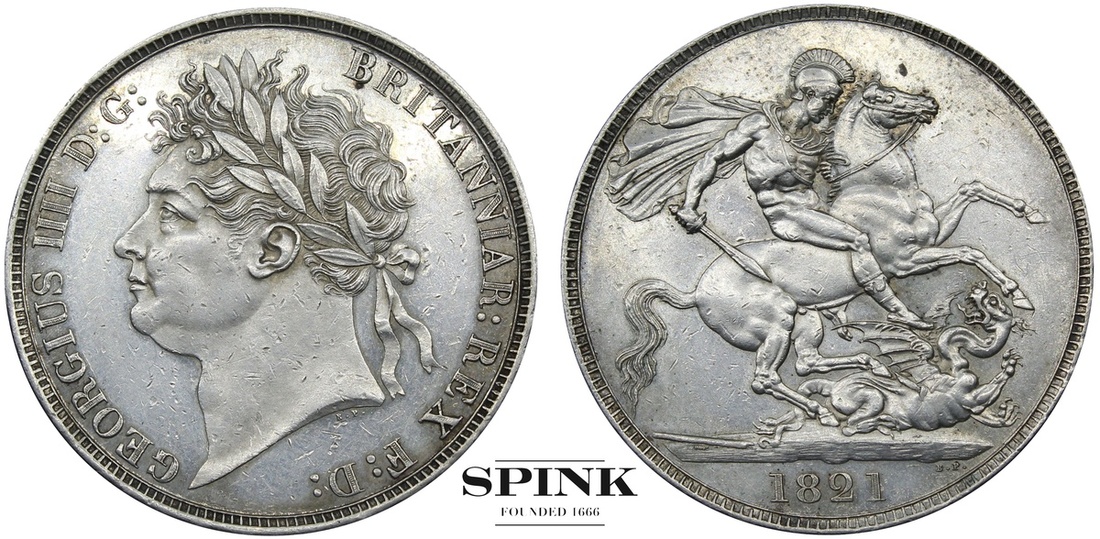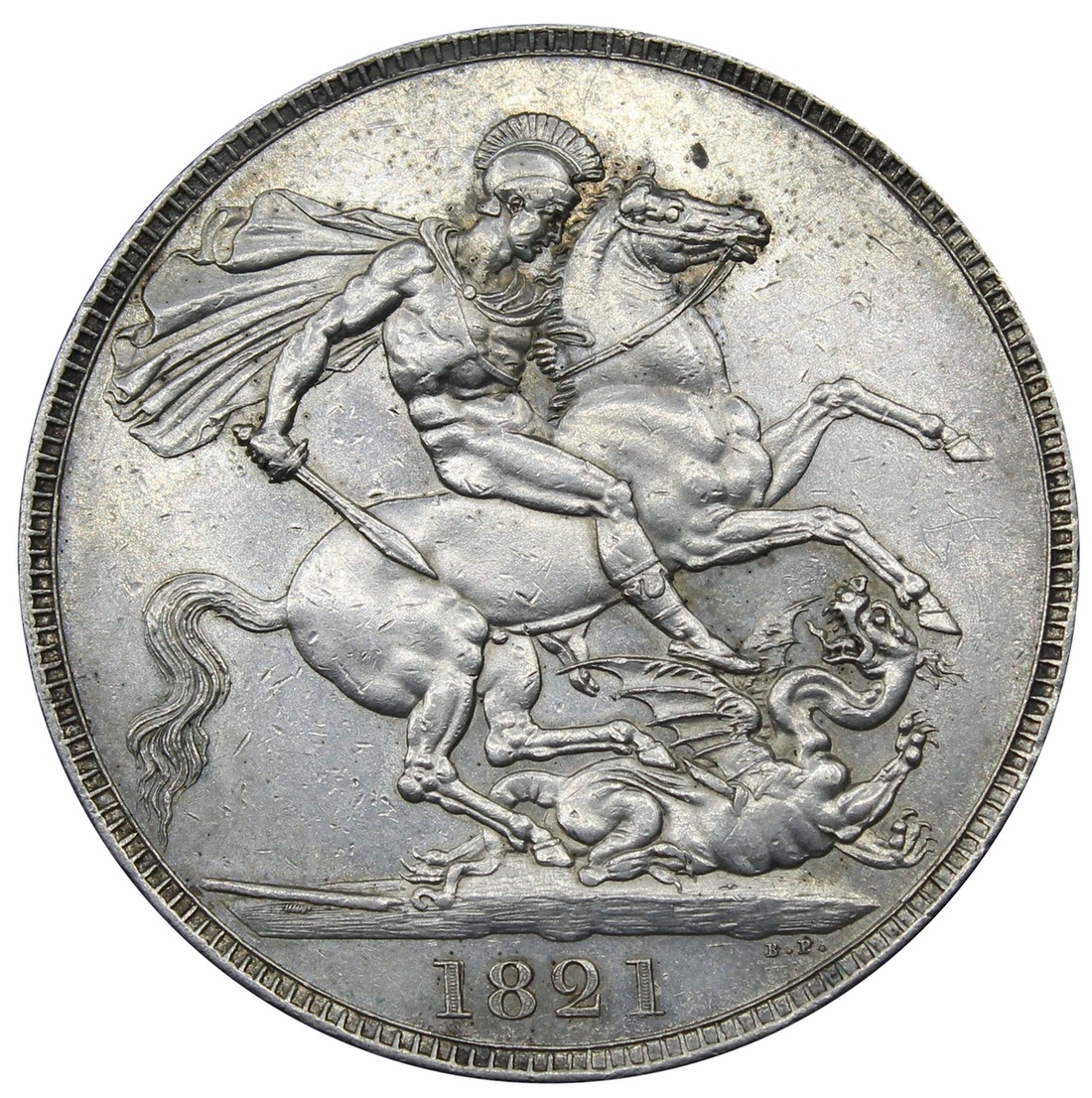 George IV, Crown, 1821 SECUNDO, rev. WWP under broken lance (ESC 2310 [246]; S.3805), light cleaning and surface fields otherwise about extremely fine