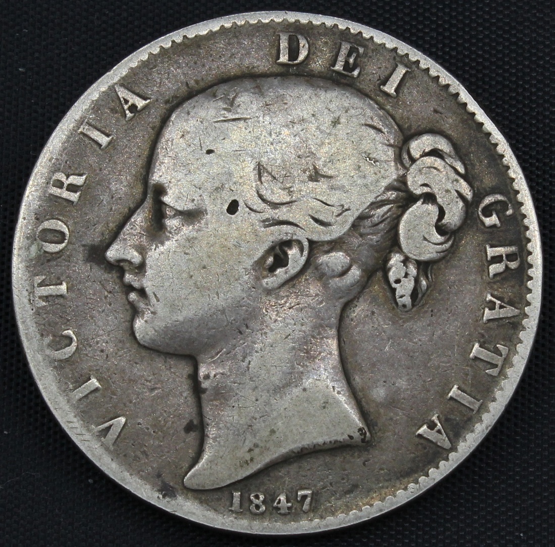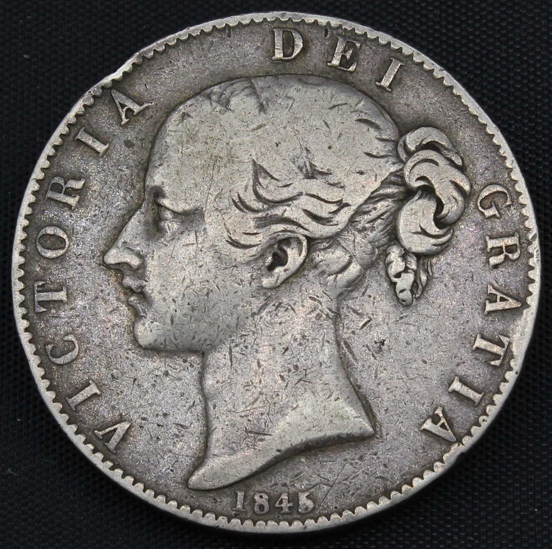 Victoria, 'Young Head' Crowns (3), 1844 VIII, star stops (ESC 2561 [280]); also, 1845 VIII, cinquefoil stops (ESC 2564 [282]); lastly, 1847 [XI], cinquefoil stops (ESC 2567 [286]; S.3882), all with light edge bruising and rub, fair to a bold fine, the last with XI obscured on edge as ESC 2569 ['R7'] but likely due to circulation wear (3)