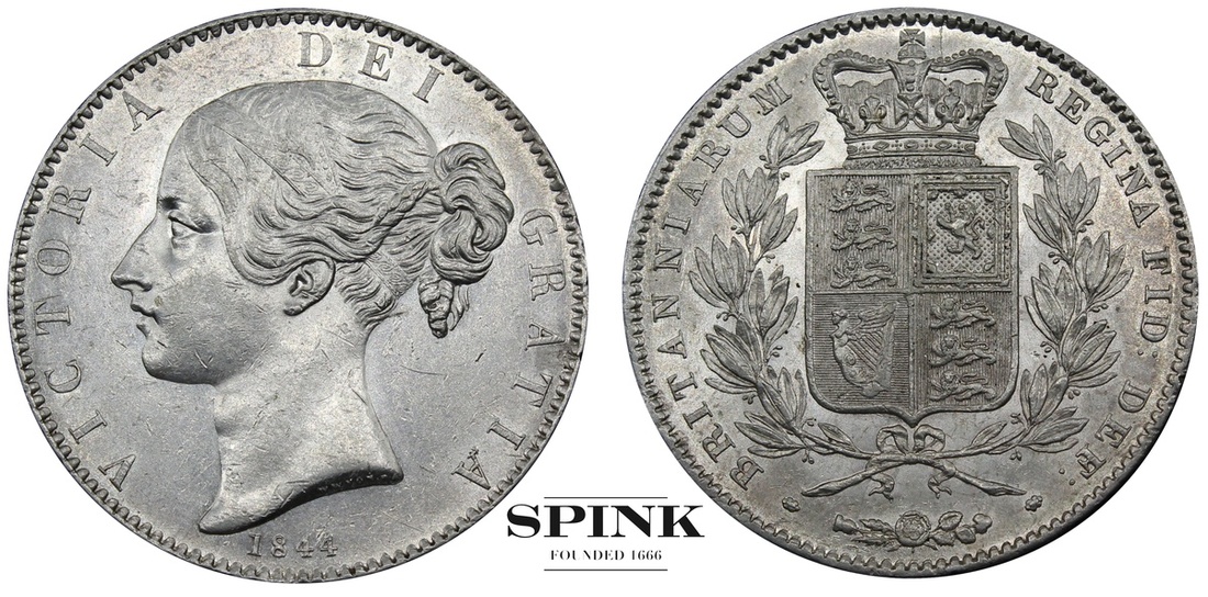 Victoria, Crown, 1844 VIII, cinquefoil stops (ESC 2562 [281]; S.3882), some hairlines in bright and lustrous surfaces, almost extremely fine, the reverse much as struck