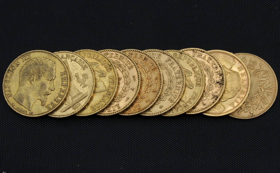 (g) Latin Monetary Union, 19th Century, gold 20-Francs (10),France, 1854-A; 1877-A (3); 1878-A; 1890-A; 1895-A; 1896-A; additionally, Switzerland, 1922-B; 1930-B, good fine to about extremely fine (10)