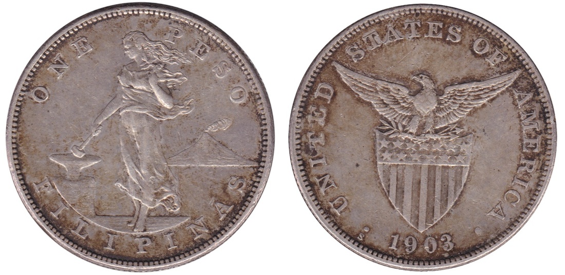 Philippines, US Administration, Peso, 1903 S, San Francisco Mint (KM 168), patchy tone overlying lustrous surfaces, good very fine