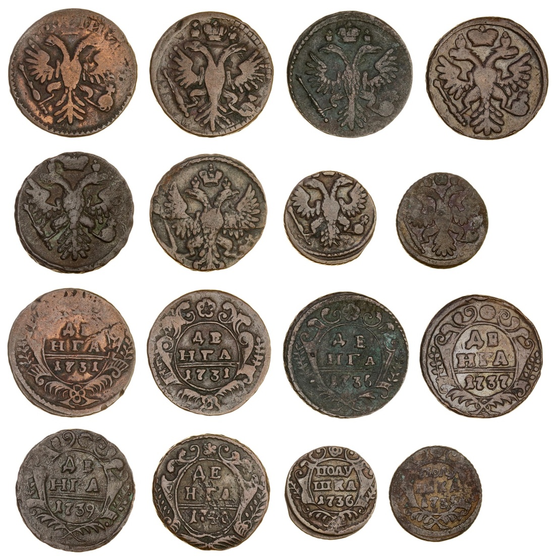Russia, Anna (1730-40), copper coins (8), Denga (6), 1731 (2), 1725, 1737, 1739, 1740, and Polushka (2), 1735, 1736, average very fine (8)