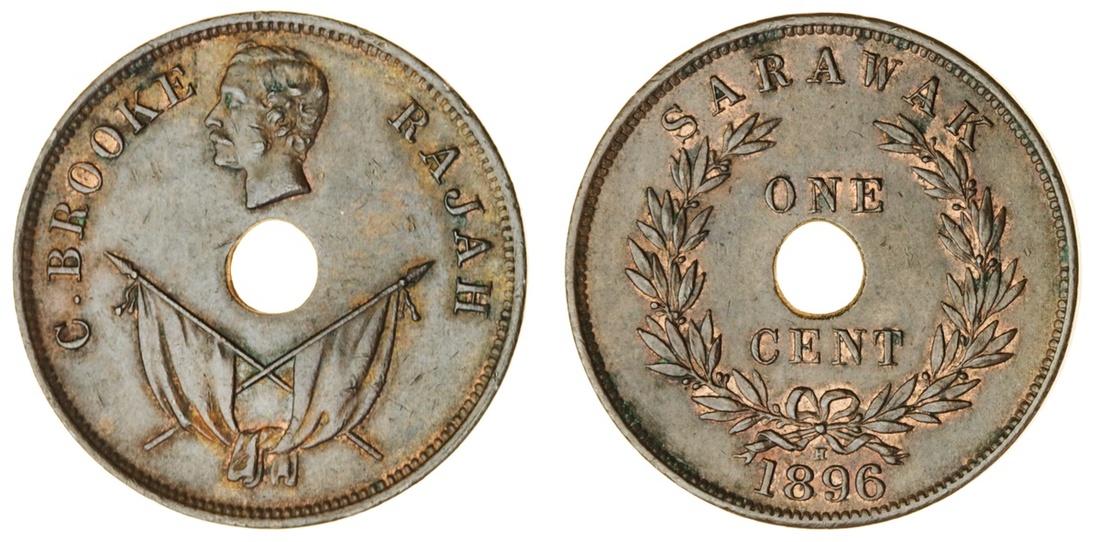 Sarawak, Charles Brooke (1868-1917), Cent, 1896, Heaton mint, head above flags, rev. value in wreath (KM 7; Pridmore 50), extremely fine, traces of lustre