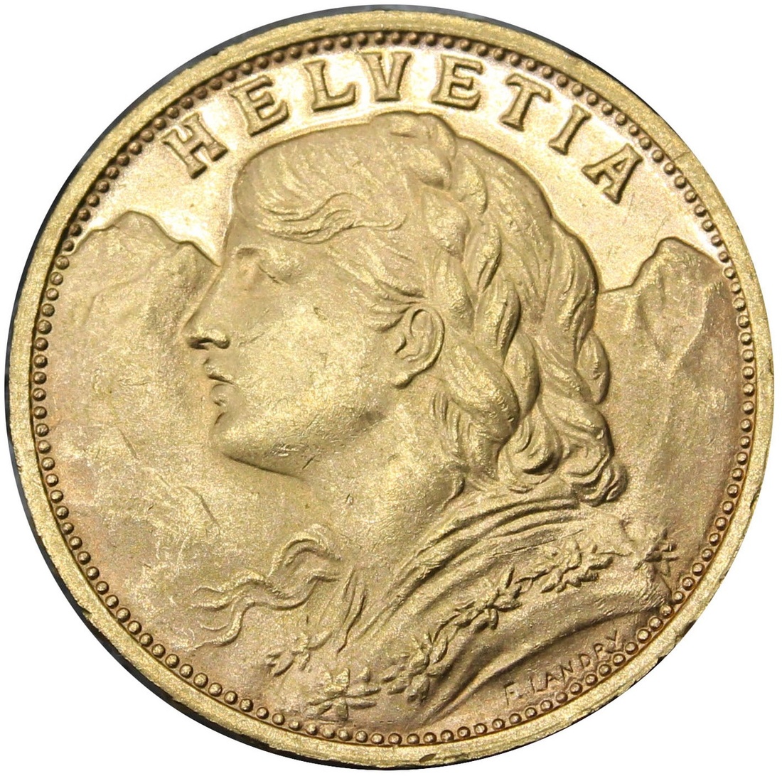 (g) Switzerland, Confederation, gold 20-Francs, 1935-B, Bern (Divo 432; KM 35.1; F.499), uncirculated