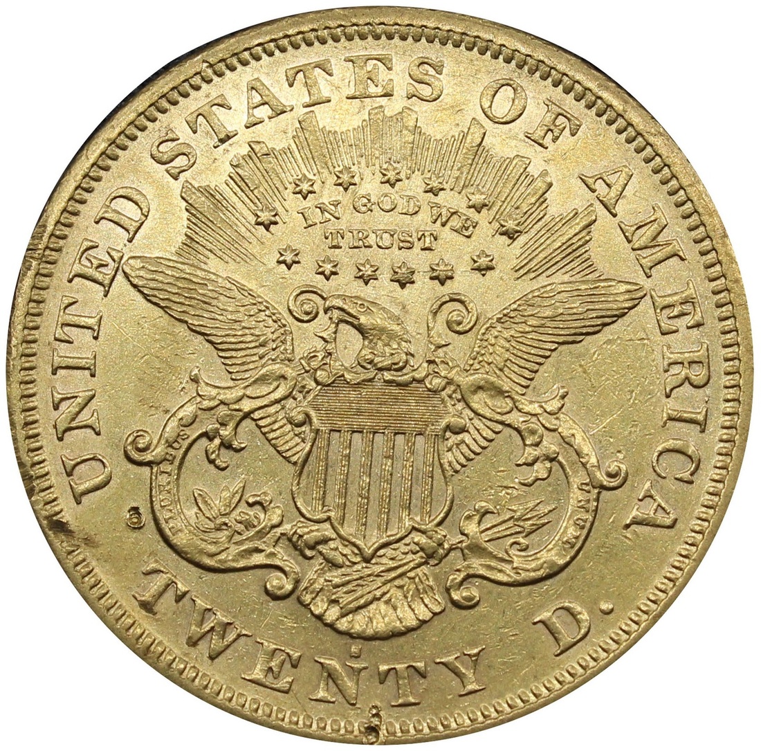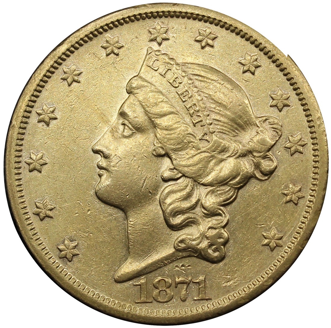 (g) USA $20 1871-S, Type 2 - With Motto, Liberty Head (Double-Eagle), San Francisco, by James Barton Longacre (PCGS ID #8962; NGC ID #26AC), cleaned with several digs to flan, a bold very fine