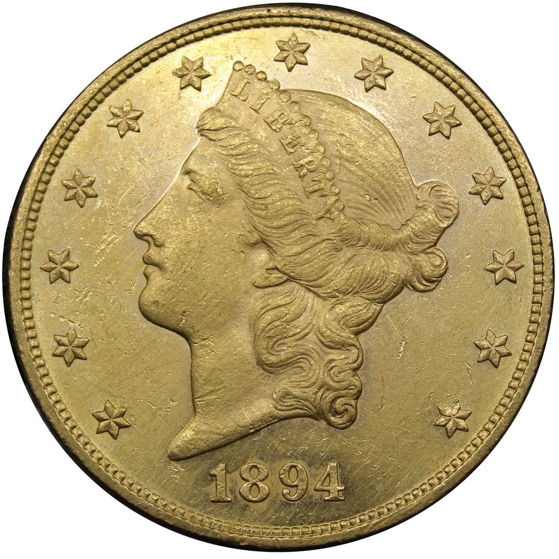 (g) USA $20 1894, Type 3 - With Motto, Liberty Head (Double-Eagle), Philadelphia, by James Barton Longacre (PCGS ID #9025; NGC ID #26CB), surface hairlines over lustrous surfaces, about extremely fine