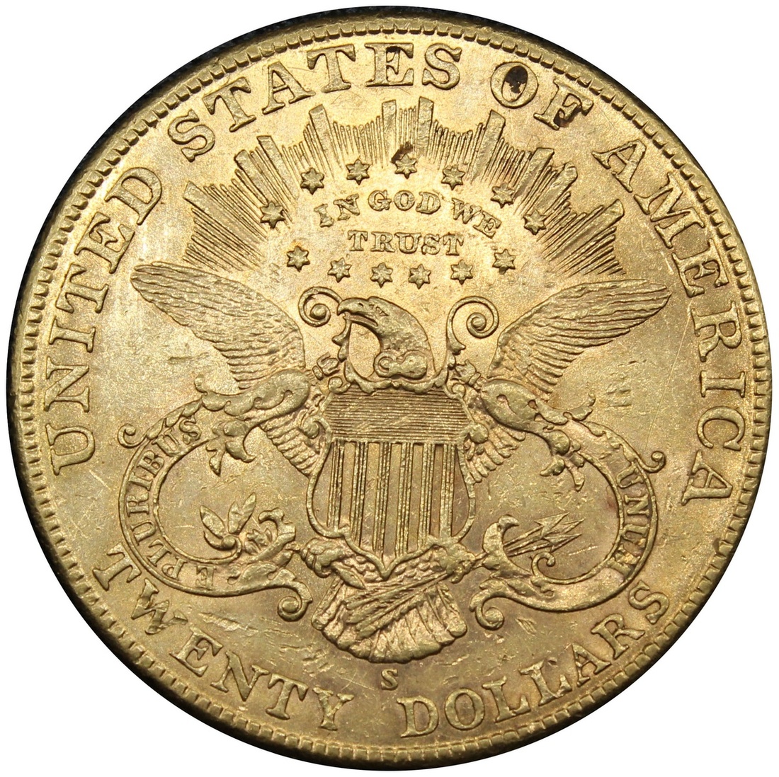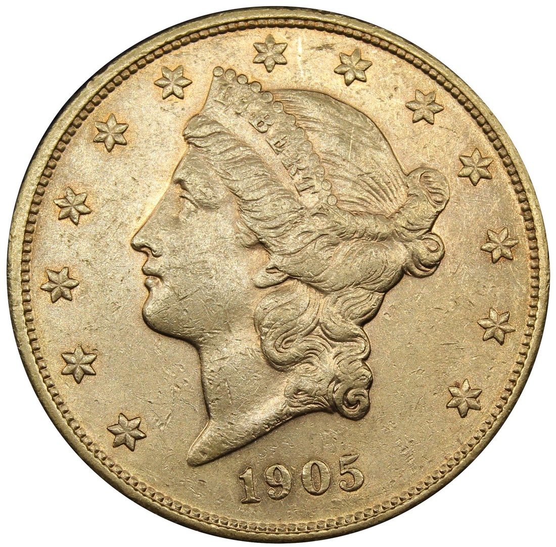 (g) USA $20 1905-S, Type 3 - With Motto, Liberty Head (Double-Eagle), San Francisco, by James Barton Longacre (PCGS ID #9048; NGC ID #26D3), rubbed with scratches and much residual lustre, about very fine