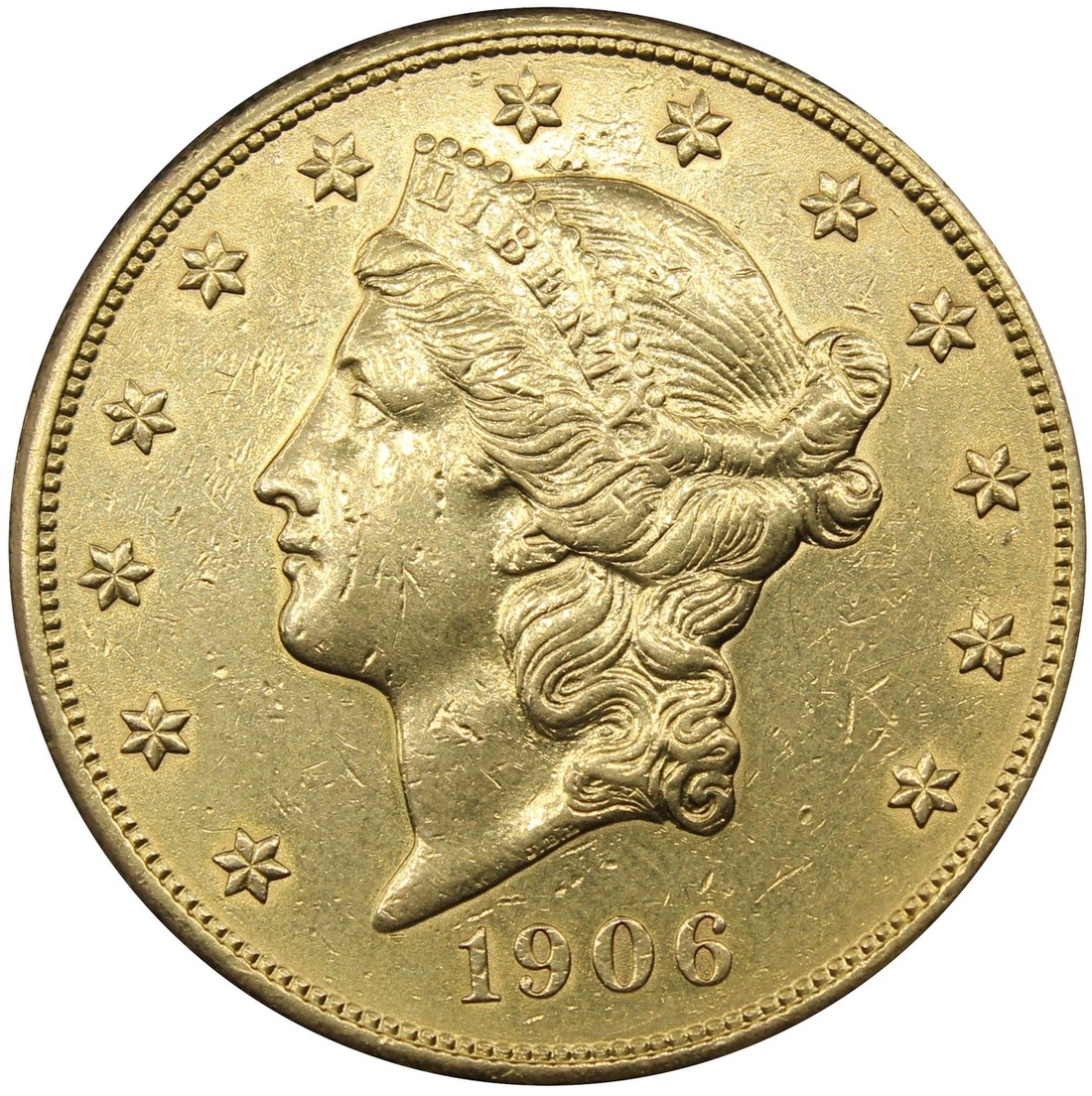(g) USA $20 1906-S, Type 3 - With Motto, Liberty Head (Double-Eagle), San Francisco, by James Barton Longacre (PCGS ID #9051; NGC ID #26D6), polished, about very fine