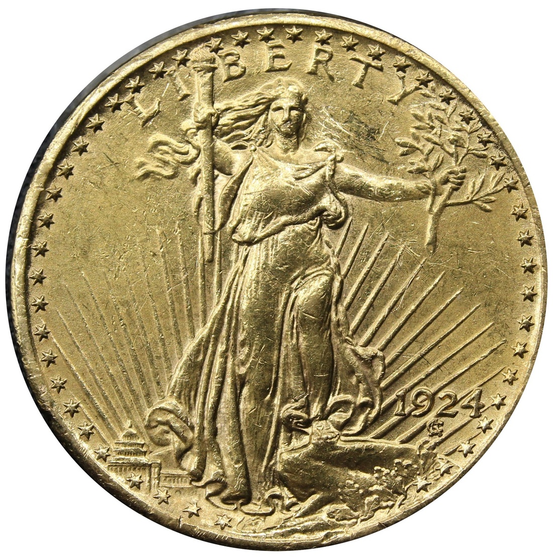 (g) USA $20 1924, 'St Gaudens' (Double-Eagle), Philadelphia, by Augustus St. Gaudens (PCGS ID #9177; NGC ID #26G7), polished with edge damage, a bolder very fine
