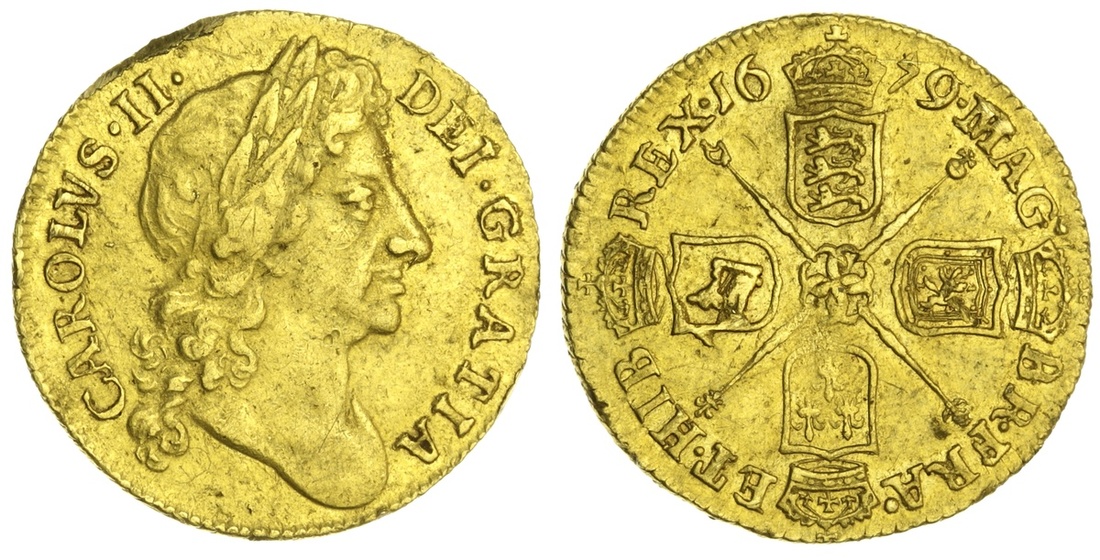 Charles II (1660-85), Half-Guinea, 1679, second bust (Murdoch II, -; Schneider II, -; MCE 106; S.3348), scrape on edge at 11 o'clock, otherwise a bolder very fine