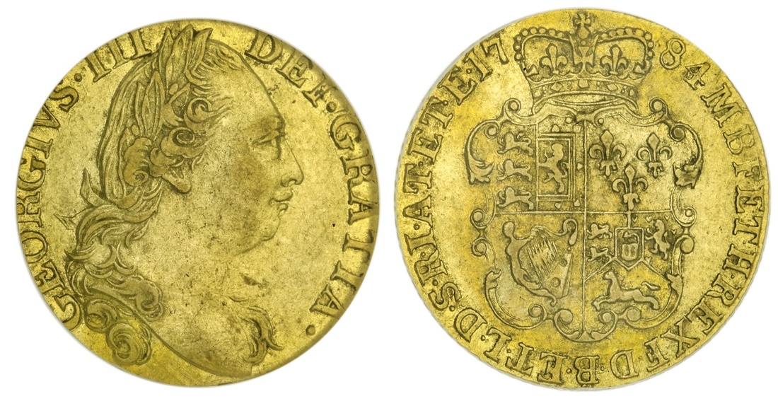 George III (1760-1820), Guinea, 1784, fourth head, 6h (Murdoch III, 94[a]; Schneider II, -; MCE 388; S.3728), some staining, very fine in LCGS holder, graded VF45
