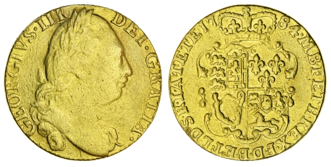 George III (1760-1820), Guinea, 1784, fourth head, 8.24g, 6h (Murdoch III, 94[a]; Schneider II, -; MCE 388; S.3728), from a mount with sweated surfaces, fair
