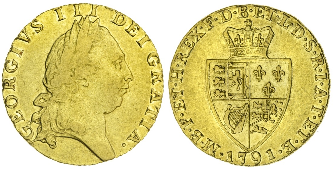 George III (1760-1820), Guinea, 1791, fifth head, 8.34g, 1h (Murdoch III, 96[a]; Schneider II, -; MCE 395; S.3729), lightly cleaned, otherwise fine