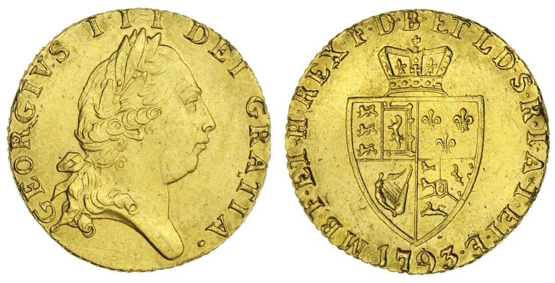 George III (1760-1820), Half-Guinea, 1793, fifth head, 4.17g, 12h (Murdoch III, 103[b]; Schneider II, 620; MCE 432; S.3735), burnished surfaces with a nick to reverse rim at 3 o'clock, struck a bolder very fine