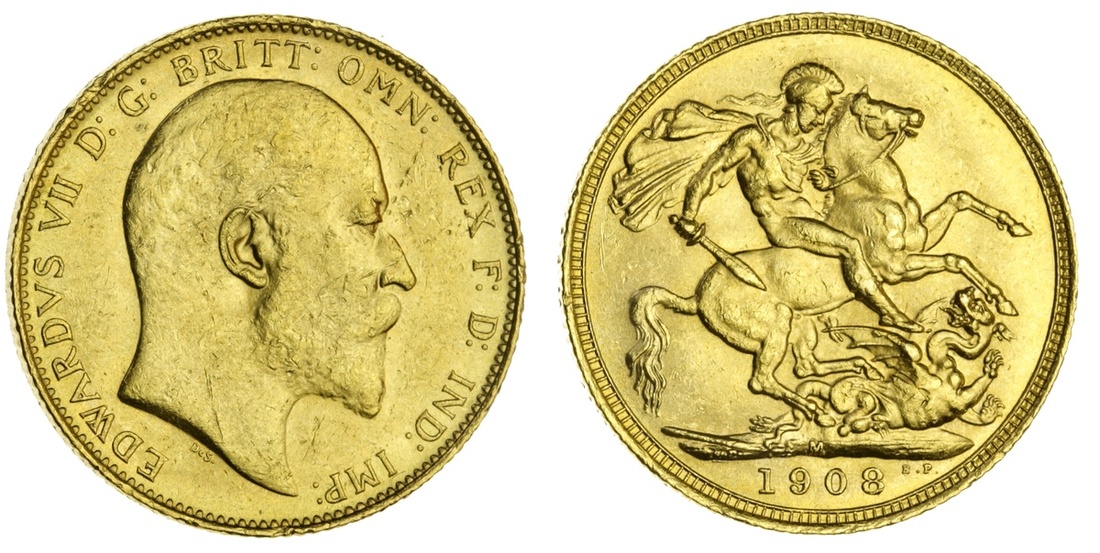 (g) Edward VII (1901-10), Sovereign, 1908-M, Melbourne (Marsh 192; S.3971), a few bagmarks, otherwise lustrous, much as struck