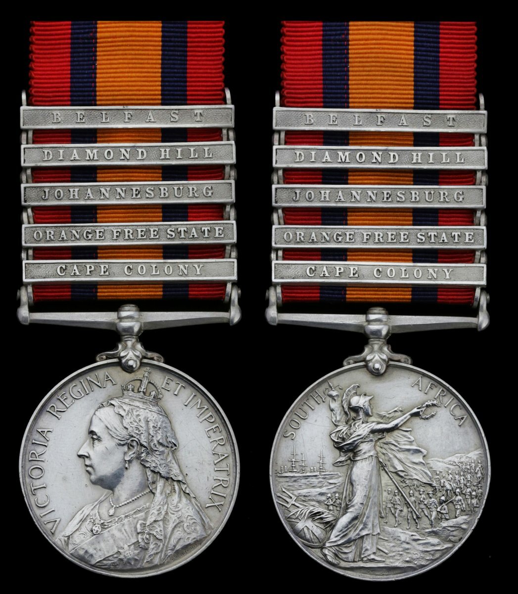 (x) Queen's South Africa 1899-1902, 5 clasps, Cape Colony, Orange Free State, Johannesburg, Diamond Hill, Belfast (3281. Cpl. P. E. Balderstone. 6. Drgns.), minor official correction to rank and initials, very fine