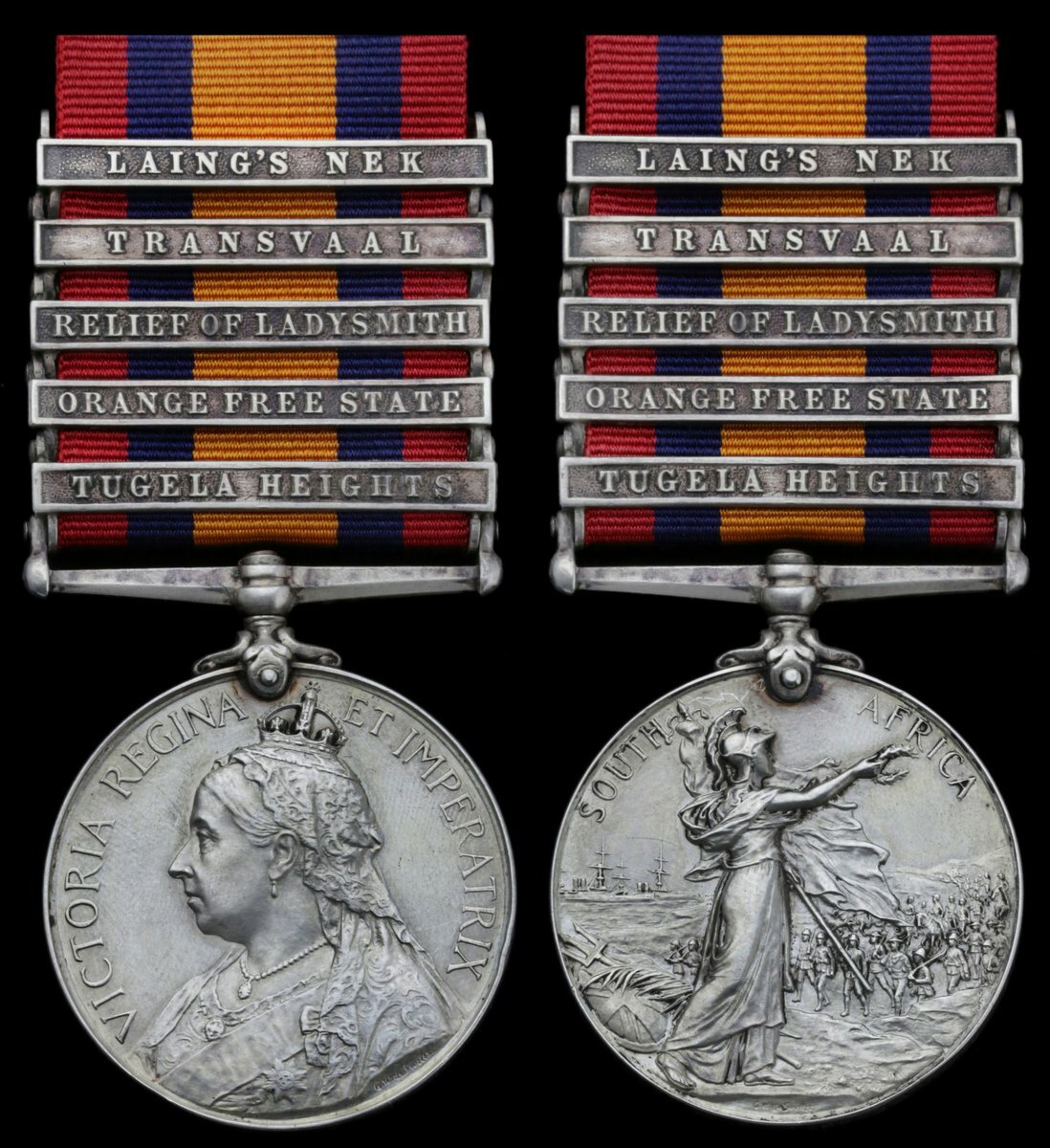 (x) Queens South Africa 1899-1902, 5 clasps, Tugela Heights, Orange Free State, Relief of Ladysmith, Transvaal, Laing's Nek, officially reimpressed naming (2942 Pte A. Cressy, W. Yorkshire Regt), 'A' of forename altered, rod reattached, sold as viewed very fine