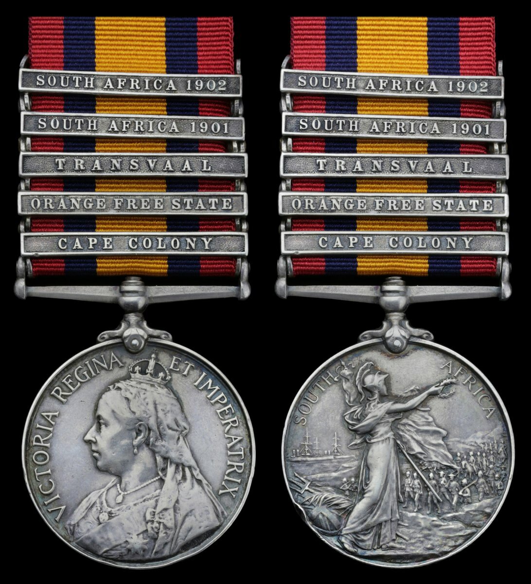 (x) Queen's South Africa 1899-1902, 5 clasps, Cape Colony, Orange Free State, Transvaal, South Africa 1901, South Africa 1902 (4568 Pte W. Bryant. 1st Rl: Dragoons), polished, significant edge knock to reverse, good fine