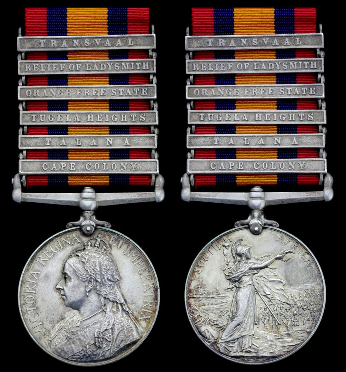 (x) Queen's South Africa 1899-1902, 6 clasps, Cape Colony, Talana, Tugela Heights, Orange Free State, Relief of Ladysmith, Transvaal (4608 Pte. W. C. Hatch, Rl. Dublin Fus:), very fine
