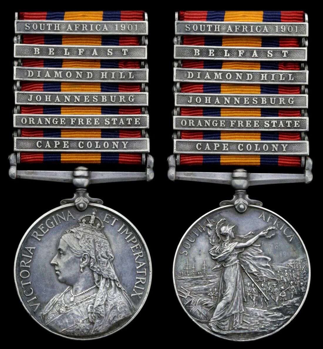 (x) Queen's South Africa 1899-1902, 6 clasps, Cape Colony, Orange Free State, Johannesburg, Diamond Hill, Belfast, South Africa 1901 (2366 Pte S. Swain, 1: Essex Regt), good very fine