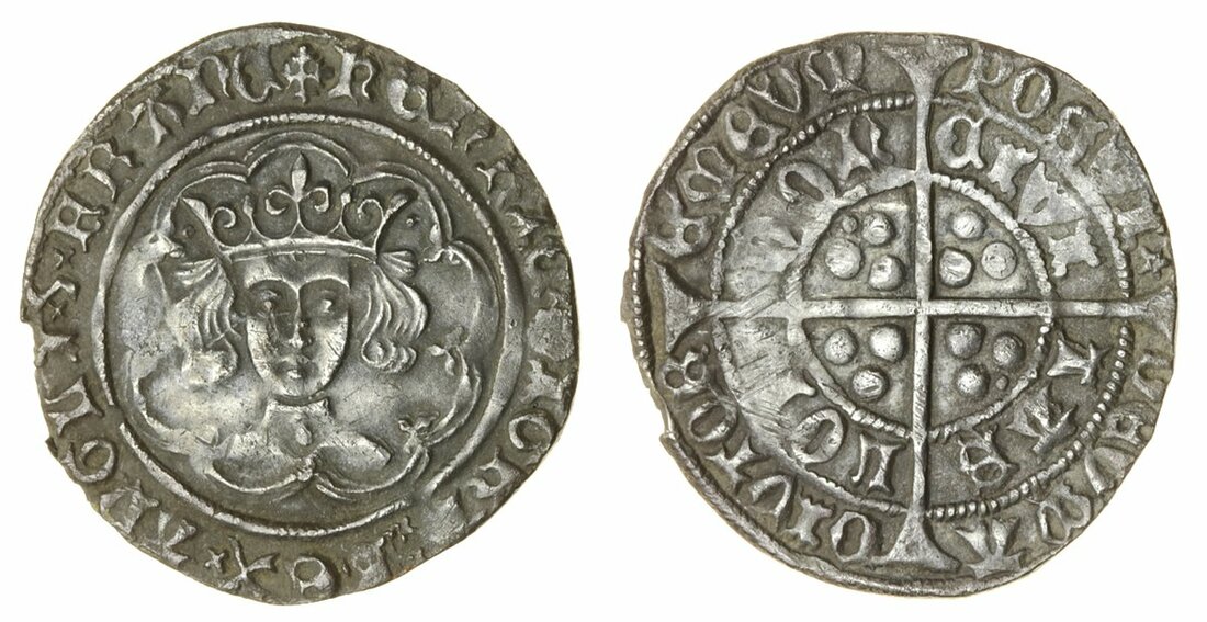 The Isladulcie Collection | Henry VI, First Reign (1422-1461), Leaf-Pellet/Cross-Pellet mule, Groat, Type C2/B, Tower, pellets by crown, leaf on neck, rev. mullet after