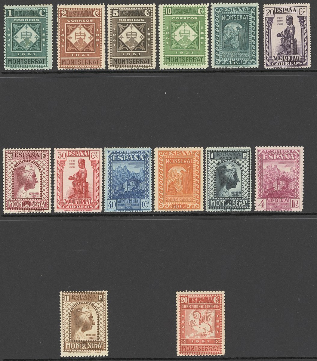 1931 Montserrat Monastery, Postage 1c. to 10p., Express 20c. (perf. 11½ except 20c., 40c. and 1p.), large part original gum; fine. S.G. 713-725, E731, £1,850