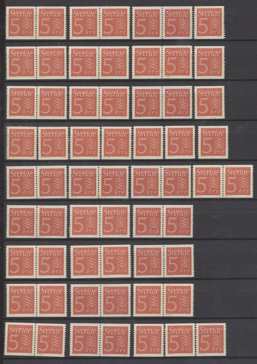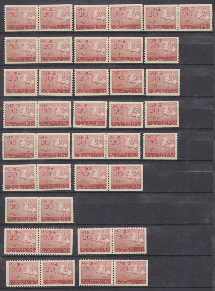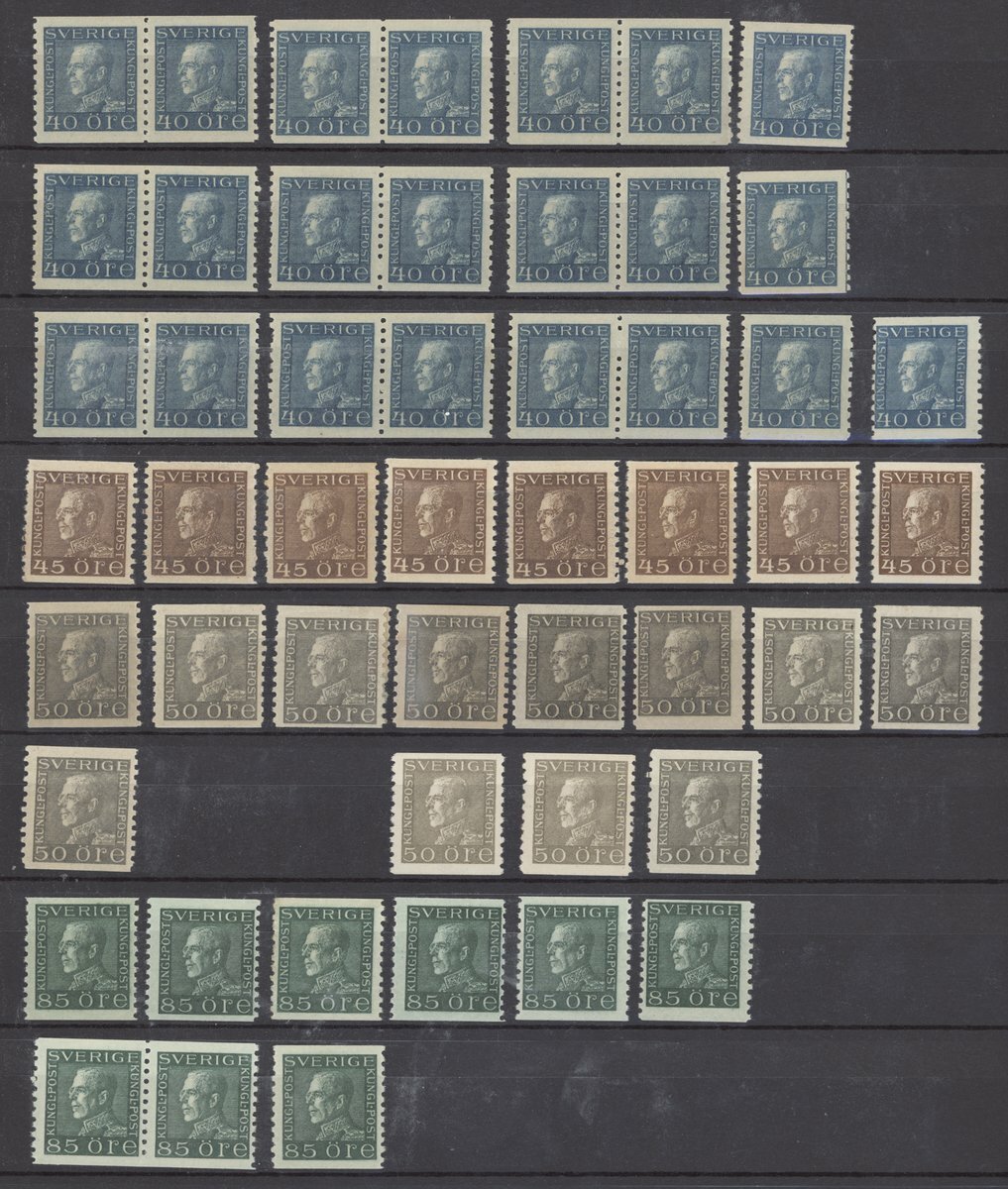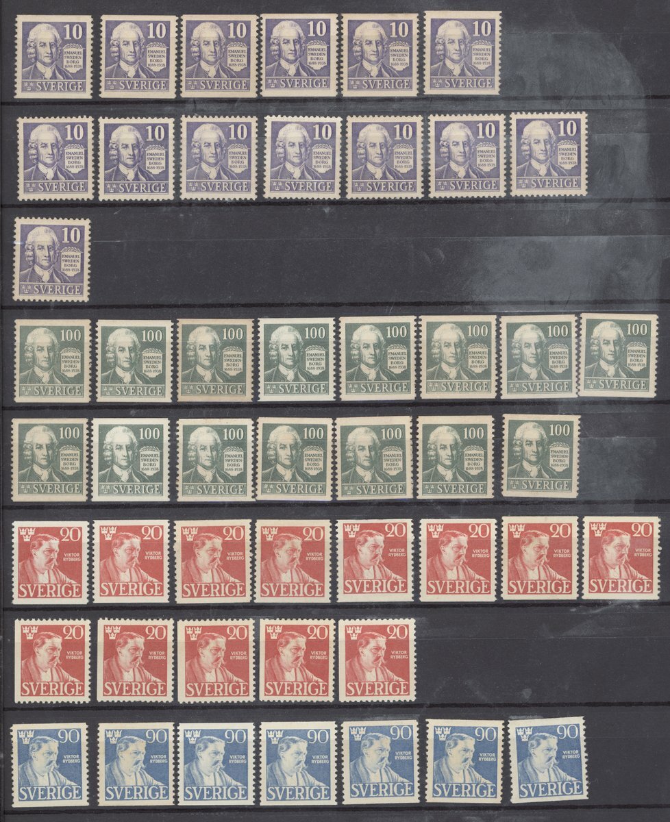 A valuable, duplicated, mostly mint selection housed in twelve stockbooks contained in a carton, including 1891-1911 50ö (5), 1k. (2), 1903 G.P.O. 5k. (8, all gum toned), 1916 Landstorm surcharges, 1920-33 35ö(16), 40ö (11), 60ö bright purple (4), 90ö (8), 120ö black (13), watermark lines 35ö (3), 60ö, 1920 Air set (3), 1921 Vasa (5 sets), 1921-36 15ö perf. 4 sides block of four, 25ö orange (12), 40ö olive-green (6), 50ö grey black (8), 1924 U.P.U. Congress 2k. (6), 5k. (5), Anniversary 2k. (2), 5k., 1927 1k. complete booklet, 1931 5k. (3), 1932 Gustavus Adolphus (10 sets of 5), 1935 Parliament (8), 1936 Tercentenary (8), 1941-58 5k. perf. four sides (block of four), perf. 3 and 4 sides pairs (5), 1952-53 20k. perf. four sides (2 singles, block of four), 1955 Stamp Centenary Set of 5 (11), later issues to 1989 Eagle Owl 30k. (25), etc., mixed condition with some toned or stained but many unmounted mint and fine