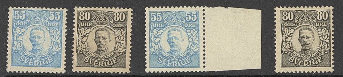 1910-19 "Varnamo" 55o light blue and 80o black, (two sets), fine mint with lightly toned gum. S.G. 82 and 84, £10,000; Facit 92, 94 SEK 68,000