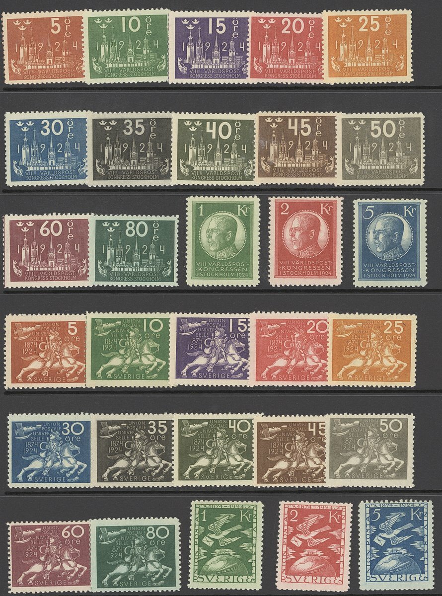 1924 UPU Congress set of fifteen and Anniversary set of fifteen, original gum or large part original gum; chiefly fine and fresh. S.G. 146-175, £1,550