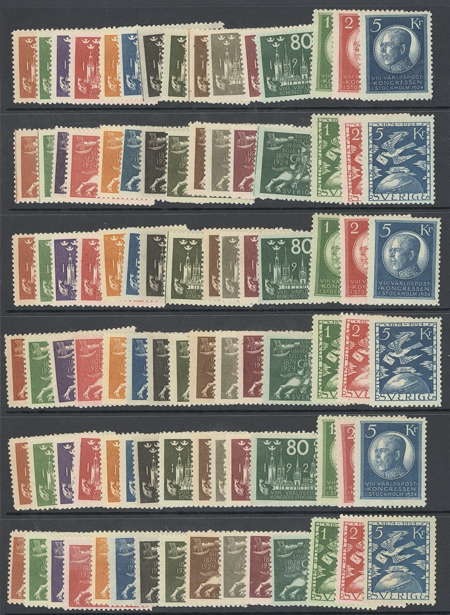 1924 UPU Congress and Anniversary sets of fifteen, six of each, original gum or large part original gum; chiefly fine. S.G. 146-175, £9,300