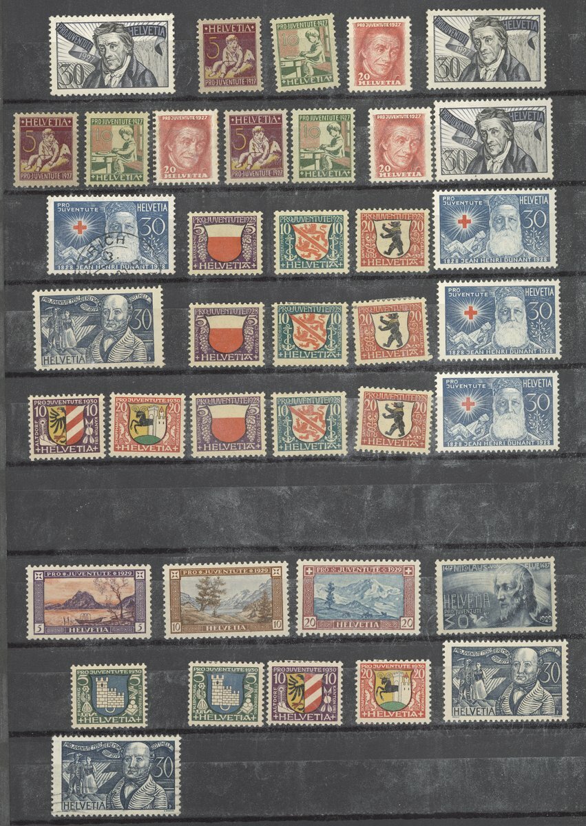 Mostly mint, duplicated selection housed in two stockbooks, contained in a carton, including 1934 NABA miniature sheet, 1938 Aarau miniature sheet, 1943 small and large Zurich miniature sheets, 1948 Imaba miniature sheet, 1955 Lausanne miniature sheet (2), Air Mails with 1923-40 35c. (3), 40c. (2), Pro-Juventute 1915 and 1916 sets (used), 1941 miniature sheet, etc., chiefly good to fine