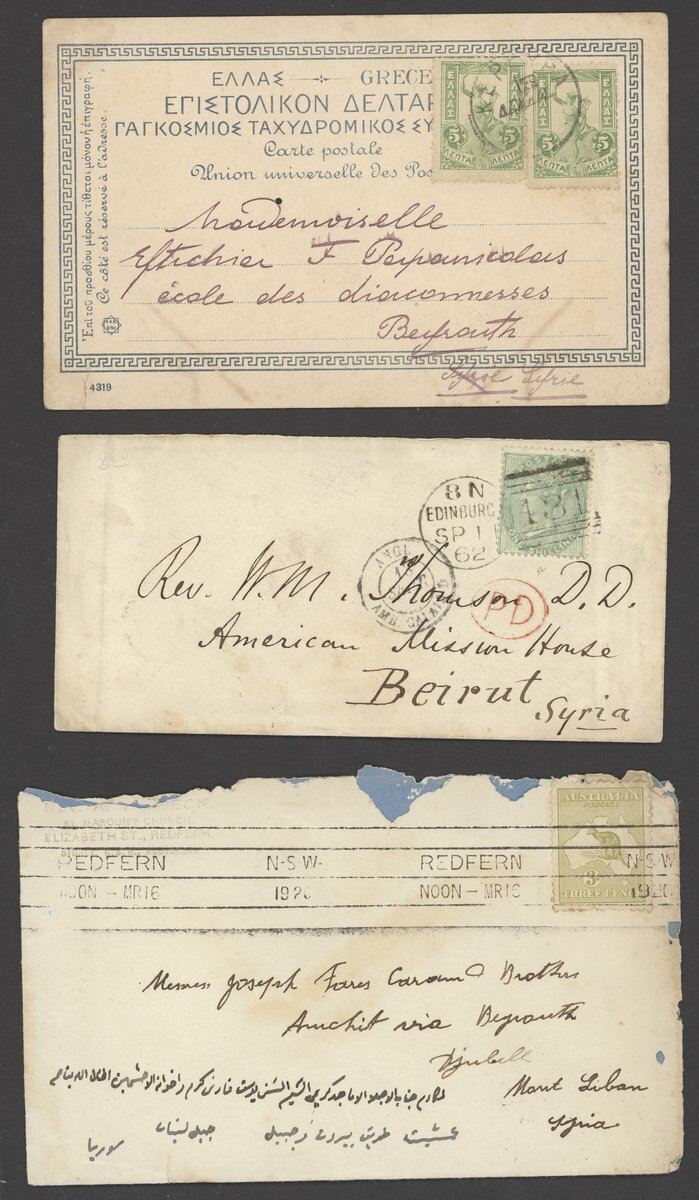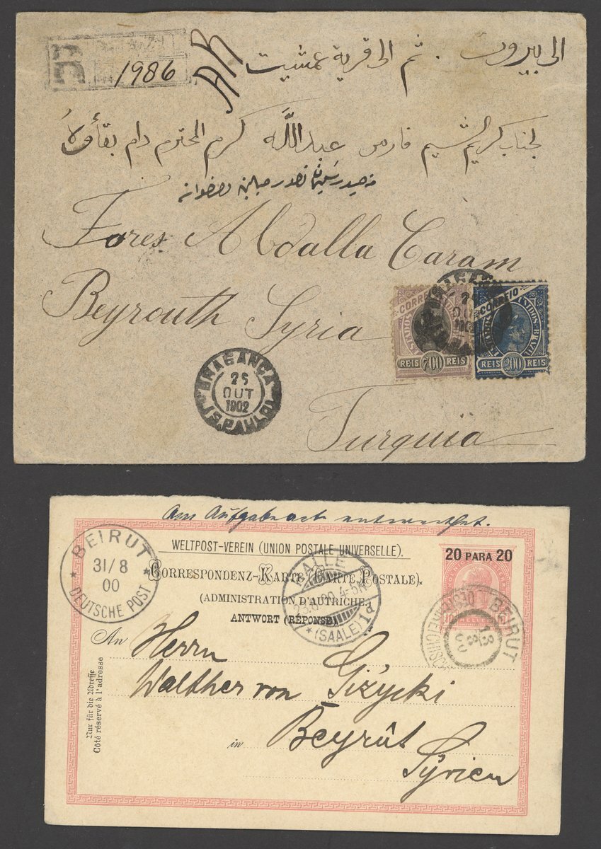 1849-1940 selection of over 120 covers and cards, origins including Australia, Austria, Belgium, Brazil, Cuba, Ecuador, Egypt, Germany, Great Britain with 1848 stampless entire letter from Glasgow, 1862 envelope franked 1856 1/-, Greece, India, Italy, Malta, Mexico, New Zealand, Switzerland, United States, etc., several registered, a variety of arrival markings, mixed condition