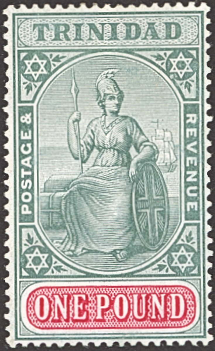 1904-09 MCA £1 green and carmine, large part original gum, fine. S.G. 145, £300