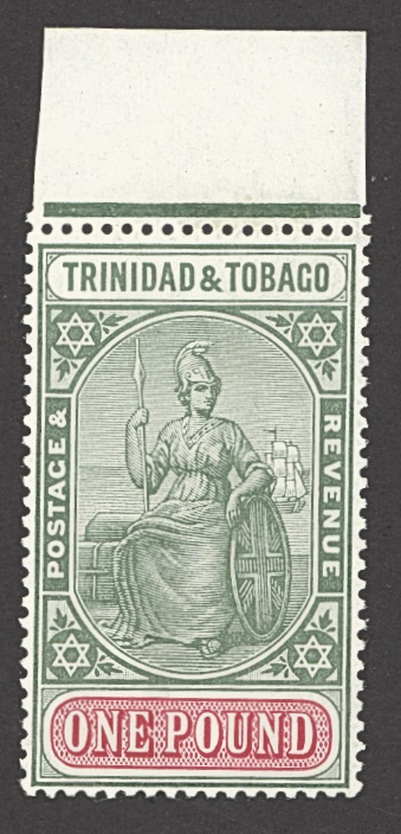 1913-23 MCA £1 grey-green and carmine, marginal example from the top of the sheet; unmounted mint and fine. S.G. 156, £275