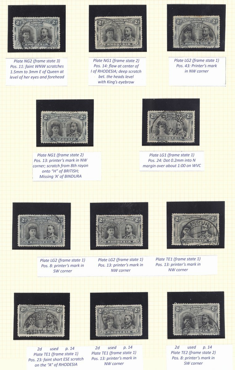 2d. used study (41) from a range of printings and with all but one plated, comprising perf. 14 (31) including short gash [2] (2) and [15], various printer's marks, and perf. 15 mint (stained perfs.) and used (10)