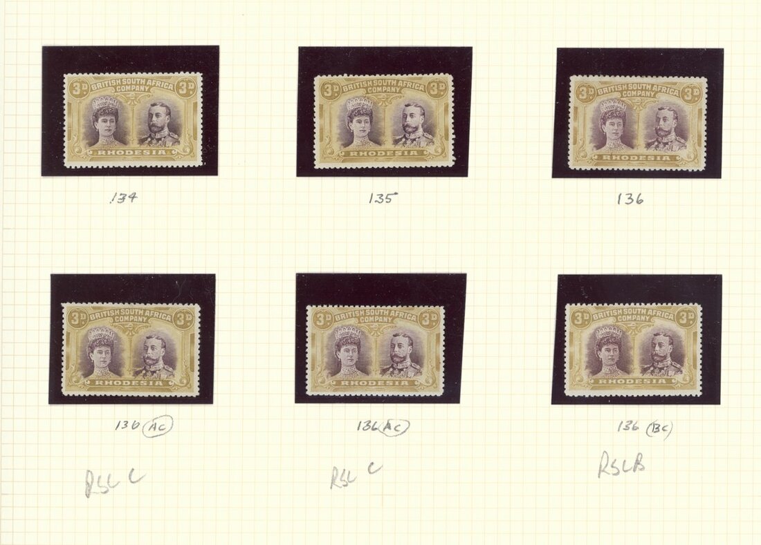 3d. mint selection comprising S.G. 134 (8), 135 (4), 136 (2), 137, RSC "A" (4), "B" (5), "C" (2) and "G", a couple with flaws, part to large part original gum and generally good to fine