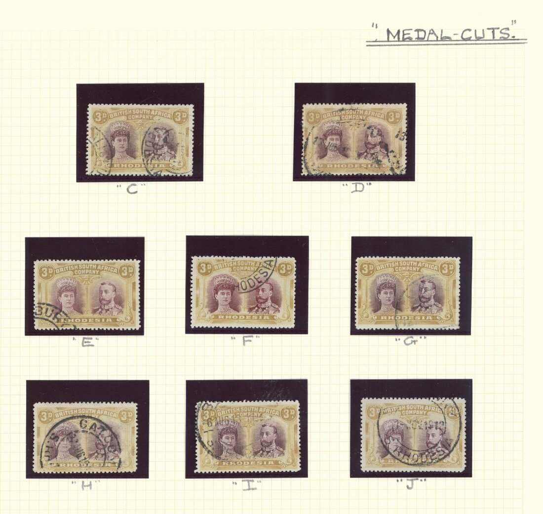 3d. selection of medal cuts comprising RSC "C" to "J", all cancelled with datestamps and generally good to fine