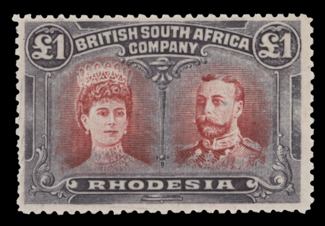 £1 carmine-red and bluish black showing plate scratches at left, large part original gum; a couple of short perfs. at left, otherwise sound. S.G. 165, £1,600