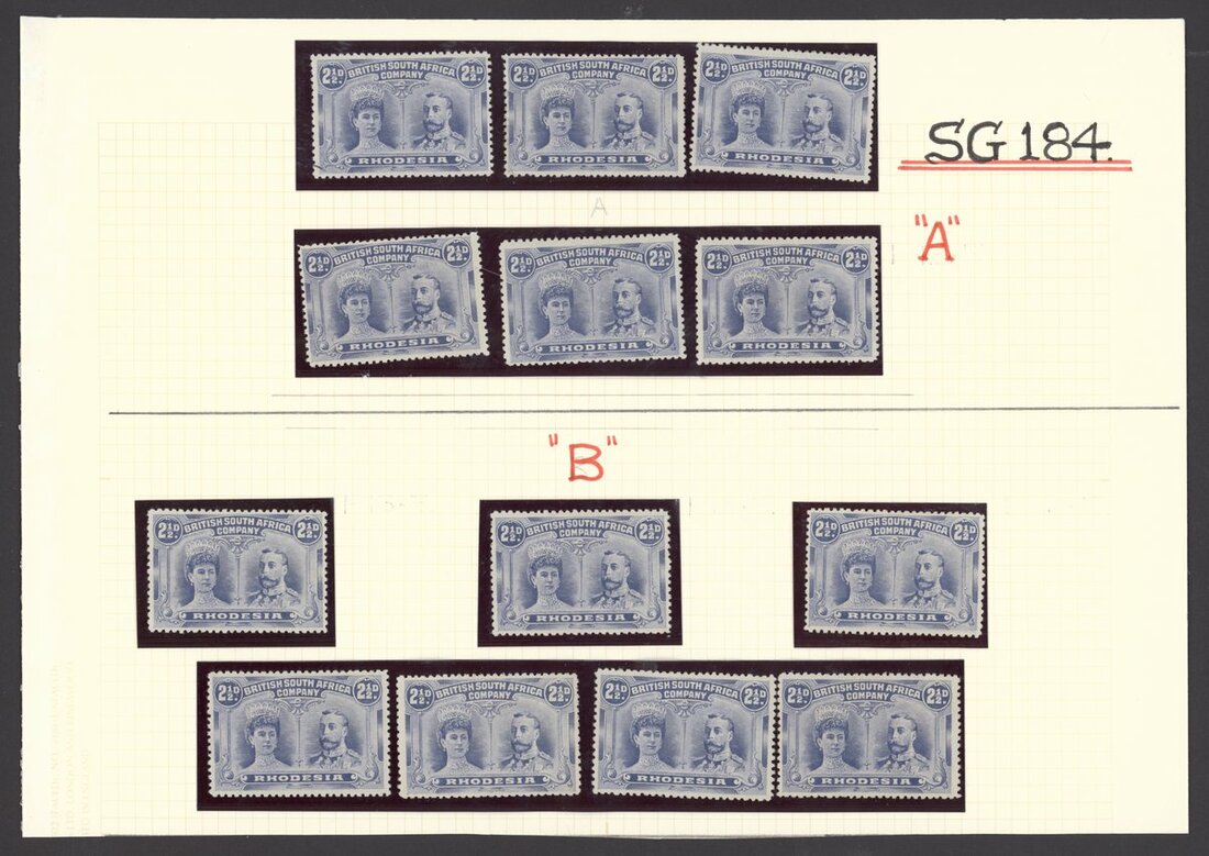 2½d. selection with an upper left corner vertical strip of three and singles (25), shades with some marked as "A" through "F", mint and generally fine. S.G. 184, £1,120