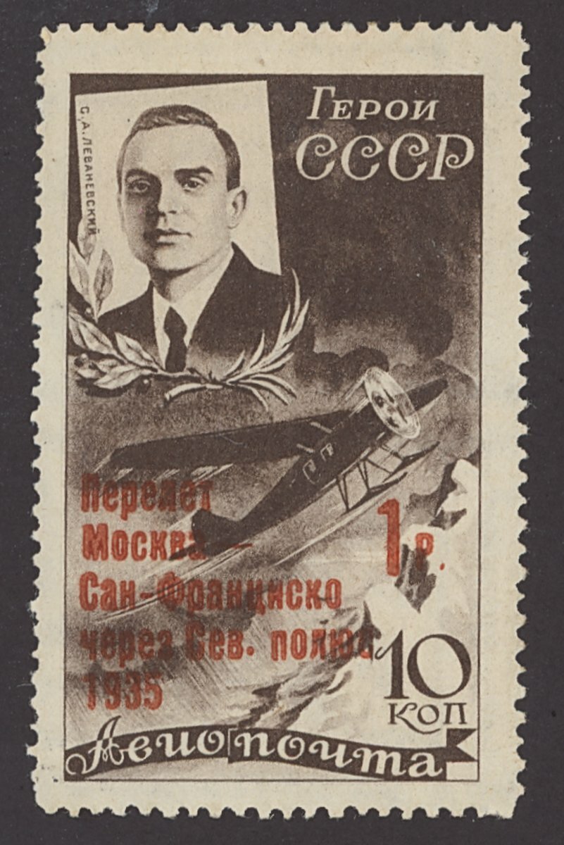 1935 Air Moscow to San Francisco 1r. on 10k. sepia, glazed mounted gum; fine. S.G. 706, £750
