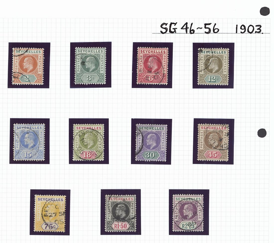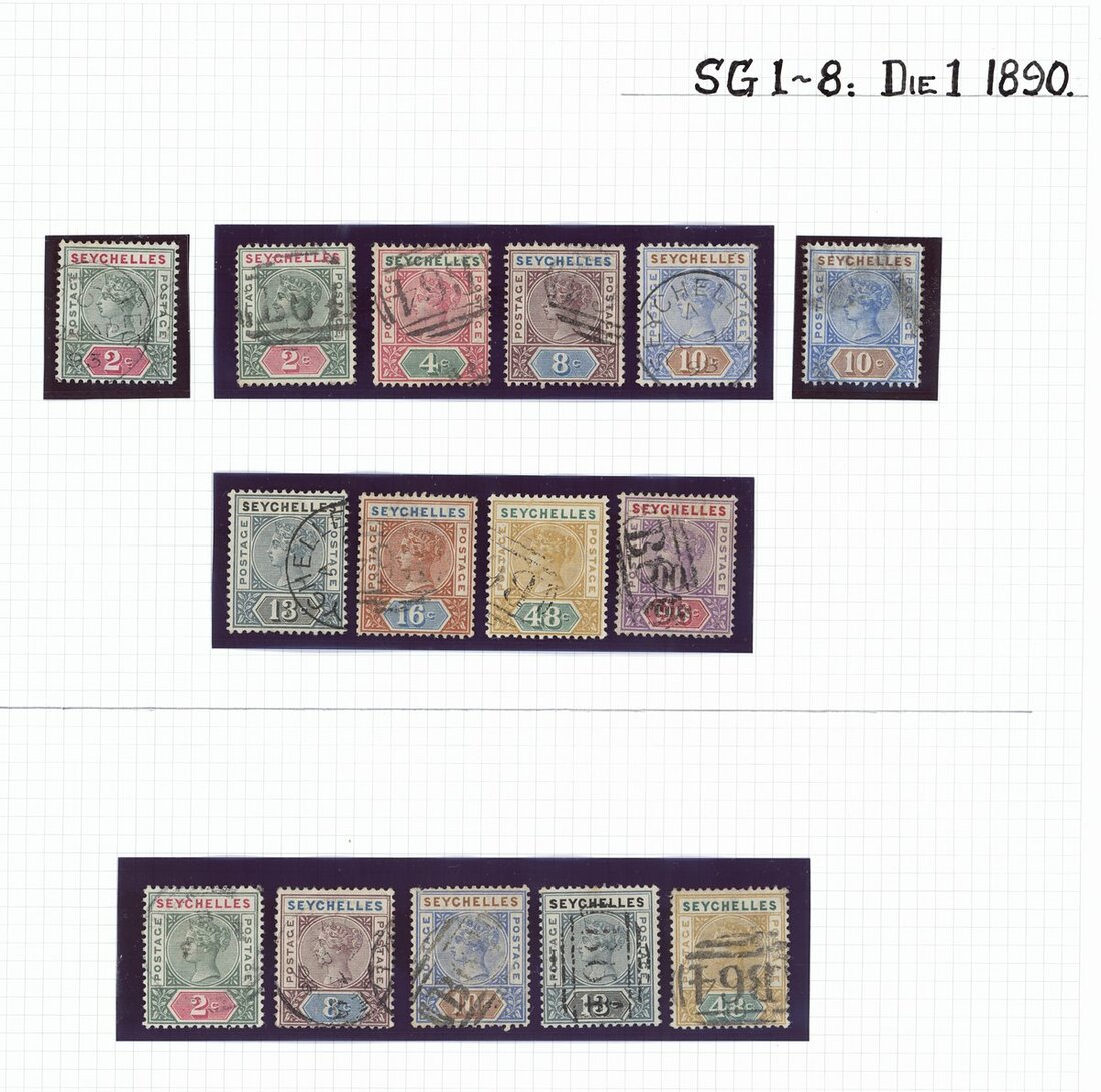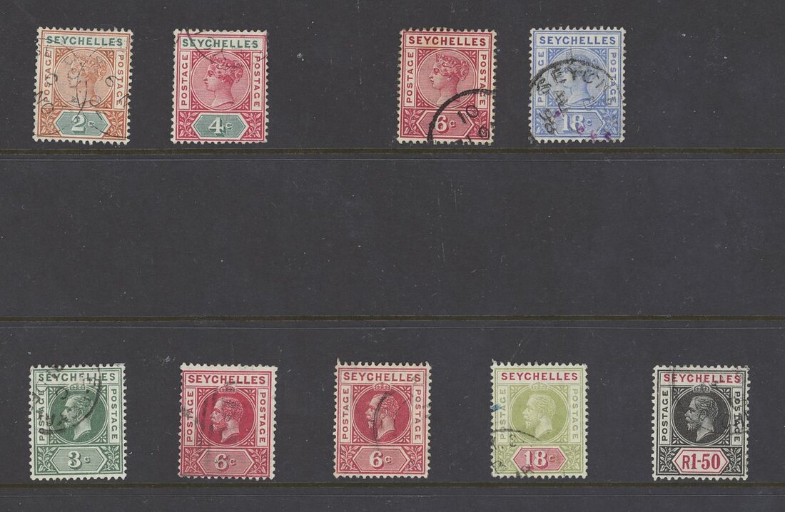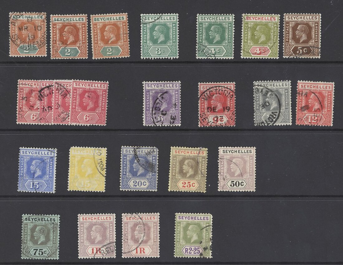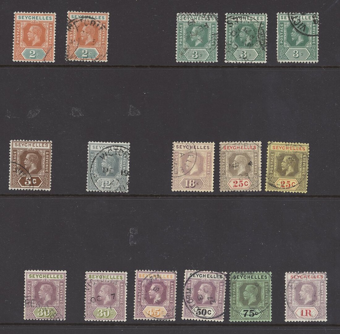 1878-1935 used collection including Mauritius used in Seychelles Z39, 41, 50 and 59, 1890-92 set, 1893 Surcharge set, 1893 (Nov.) set, 1903 (May) set, 1906 set less 75c., and some KGV to 1r.50; generally good to fine