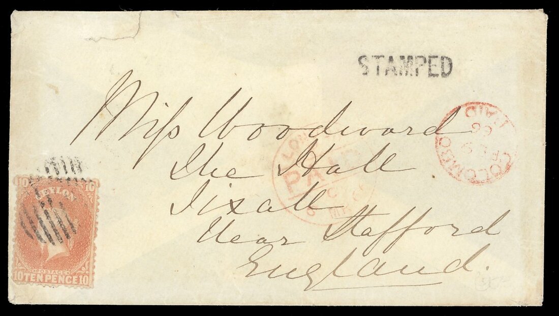 1866 (9 Feb.) envelope from Colombo to England, handstamped "