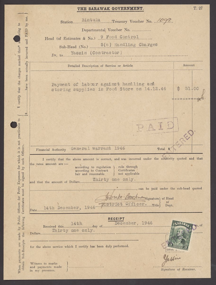1946 (Dec.) Treasury Voucher bearing 1934 3c. tied by