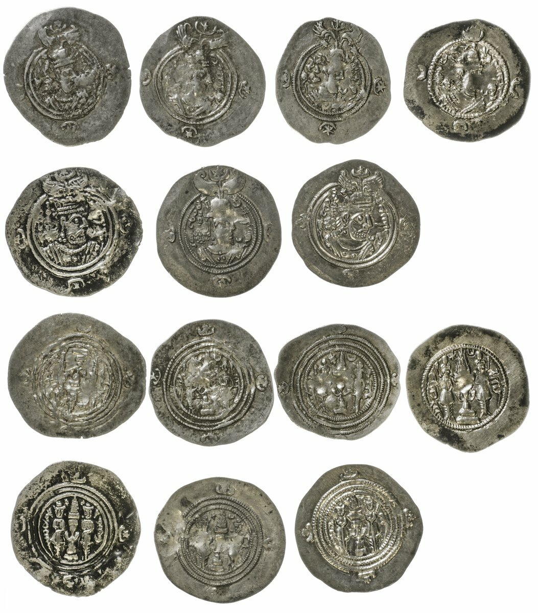 Sasanian Empire, Khusru II (591-628), Drachms (6), various types of bust, mint and date variants, together with a cruder Drachm of same style, thought to be a contemporary copy, very fine to extremely fine (7)