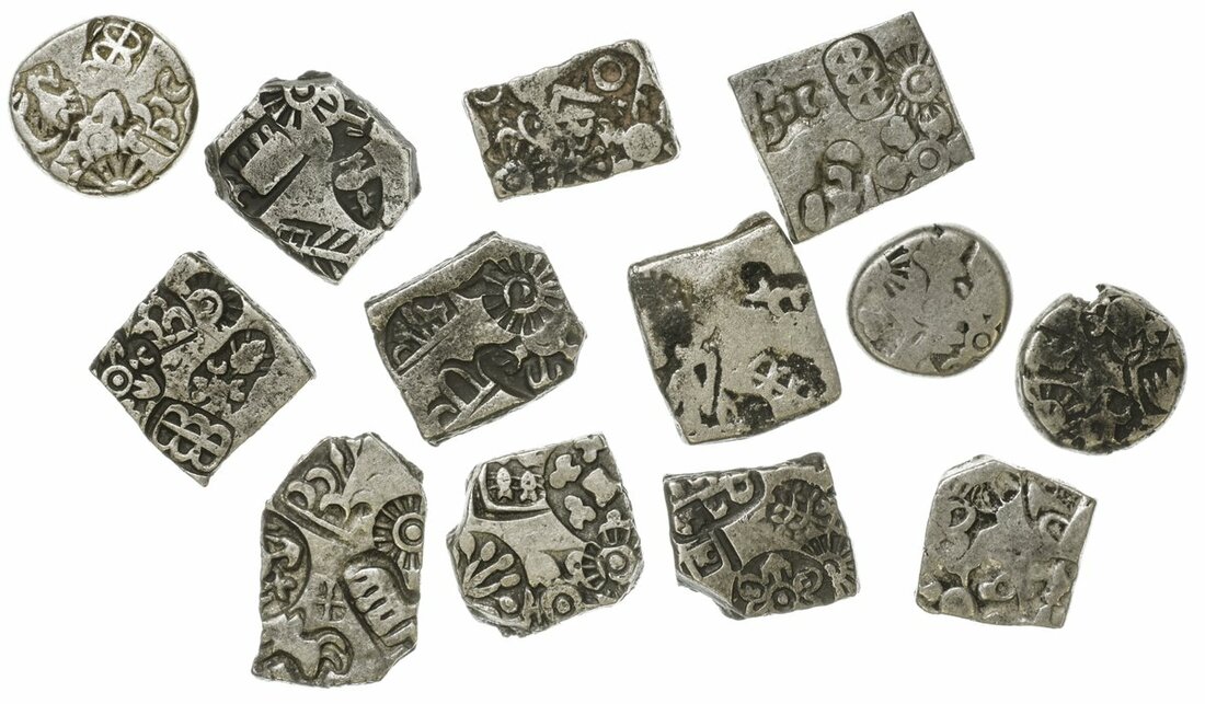 Ancient India, Magadha, Mauryan & Sunga Empires (c.321-150 BC), Karshapana (13), 5-punch types, many different symbols, all identified by tickets (Hardaker series 3-5), generally fine to very fine (13)